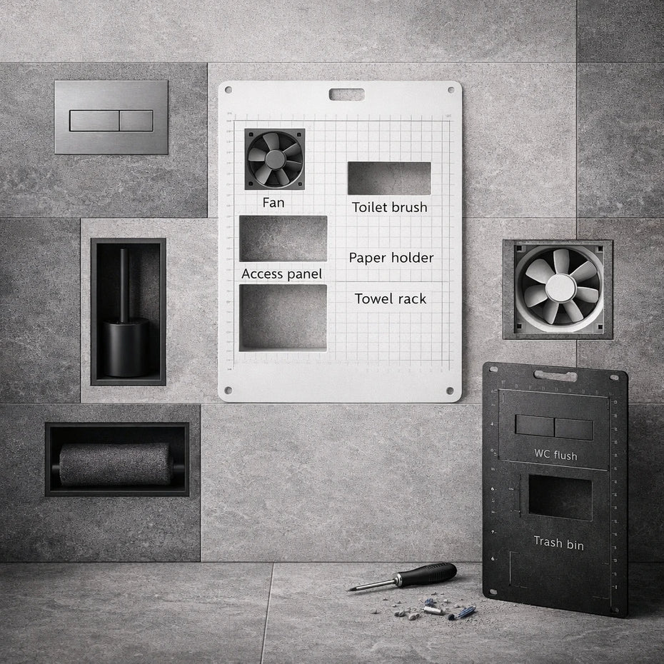 EasyToTile создает интегрированные решения для ванных комнат и туалетов, обеспечивая чистые, бесшовные интерьеры без визуального беспорядка. Это изделия, которые устанавливаются вместе с плиткой и становятся естественной частью стены — без рамок, без выступов, без компромиссов.